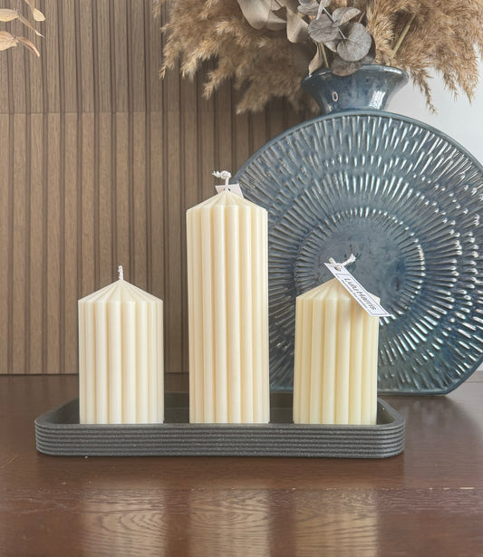 Amara Ribbed Pillar Trio Set (3 Candles)